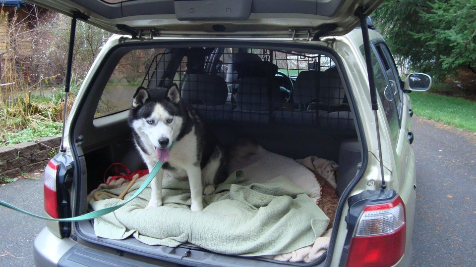 Cyndi is a devoted admirer of Siberian Huskies, and has worked with the breed for many years. She lives in a rural setting and has a special husky-proof enclosure (huskies are among the most athletic of dogs, and like most northern breeds, they are enthusiastic diggers; a normal fence cannot contain a determined husky). An avid runner, Cyndi runs with her huskies every day, allowing them to burn off some of their almost boundless energy. Cyndi hoped to adopt out Koda through the SPDR network, and that would be the best outcome, but she was prepared to foster Koda indefinitely. This was going to be a great situation for Koda, the only problem was that Cyndi is 150 miles from Bellingham, in Kitsap County. My part in this was easy; all Koda needed was a ride.