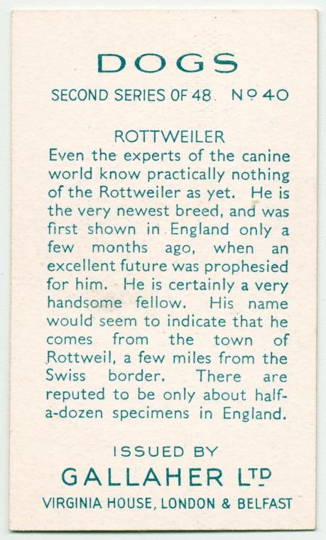 Several articles and blogs have been published recently exploring the extreme breeding that some breeds have been subjected to. It is easy to look at the English Bulldog and wonder at the thinking that went into its facial development, and who can look at the modern German Shepherd Dog and not be concerned about the structure of their hind quarters? I was completely surprised, though, to see pictures and descriptions of dogs like the Rottweiler from just 75 years ago. What sacrifices of health and temperament must have been made to change their appearance so radically? It is important, of course, to recognize that while 75 years is not so long in human development, it might mean 40 or more generations of dogs.