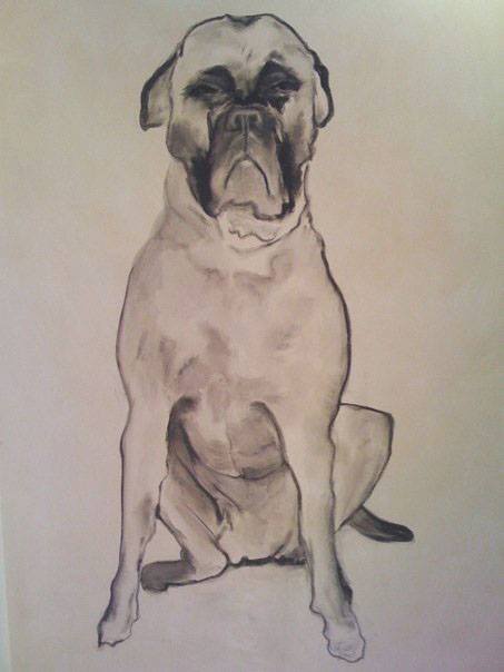 Partly because I happened to have bought a new digital camera the same week we adopted Iggy, and partly because I joined Facebook a year later, I have hundreds of good pictures of Iggy. It makes me sad to look at them (Iggy died several years ago), but I do it anyway. I think the part that bothers me the most is that I always found Iggy very expressive, but most of (not all) the pictures I have of him don’t look like him anymore. I mean, the pictures are obviously him, and some of them are good! Iggy smiling in the flowers, Iggy clowning around with a ball, Iggy laying upside down… but the Iggy I can’t find in those pictures is the dog who looked at me and asked me to look at myself. I don’t see the look of the dog who taught me more than I taught him. I do see those in Michelle’s portrait of him, though. In Michelle’s portrait of Iggy, she captured his pride and his humility, his confidence and his reticence, his joy and his sadness, his calmness and his power. More than any of the hundreds of pictures I have of him, Michelle’s portrait looks like Iggy.